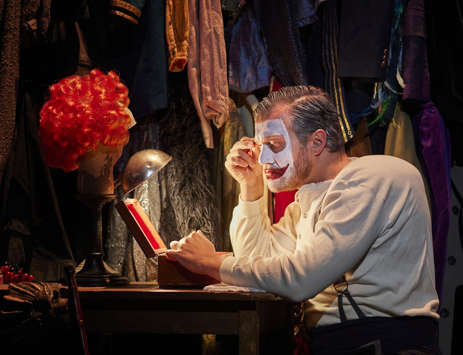 025 NTT遇見巨人—威爾第歌劇《弄臣》_弄臣里戈雷托在化妝鏡前,準備裝扮成取悅公爵的小丑 ©Keith Saunders 你聽過命運與音樂交織的悲劇之聲嗎?今年臺中國家歌劇院迎接10週年,以「遇見巨人」系列重磅推出威爾第的不朽經典《弄臣》,這部名列十大歌劇的鉅作,於10月2日至5日在歌劇院盛大演出。改編自澳洲歌劇團的傳奇版本,已故名導莫辛斯基將故事搬到1950年代義大利,揭露上流社會的腐敗與人性掙扎。由指揮張尹芳領軍國立臺灣交響樂團,聯手國內外頂尖聲樂家,帶你走進威爾第的音樂宇宙!